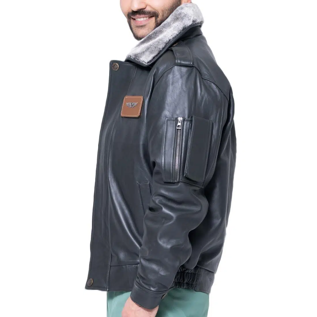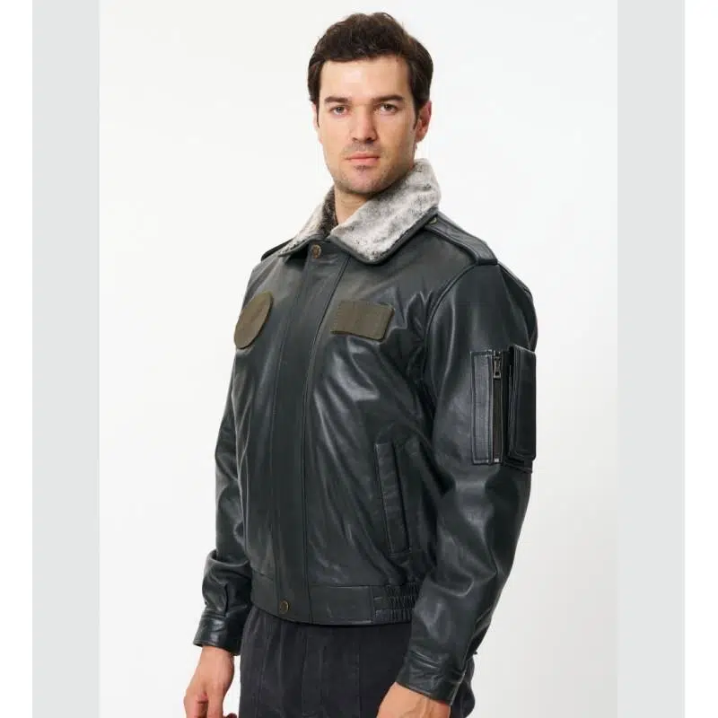 ÇIKARILABİLİR YAKALI YAN CEPLİ DERİ PİLOT MONTU
