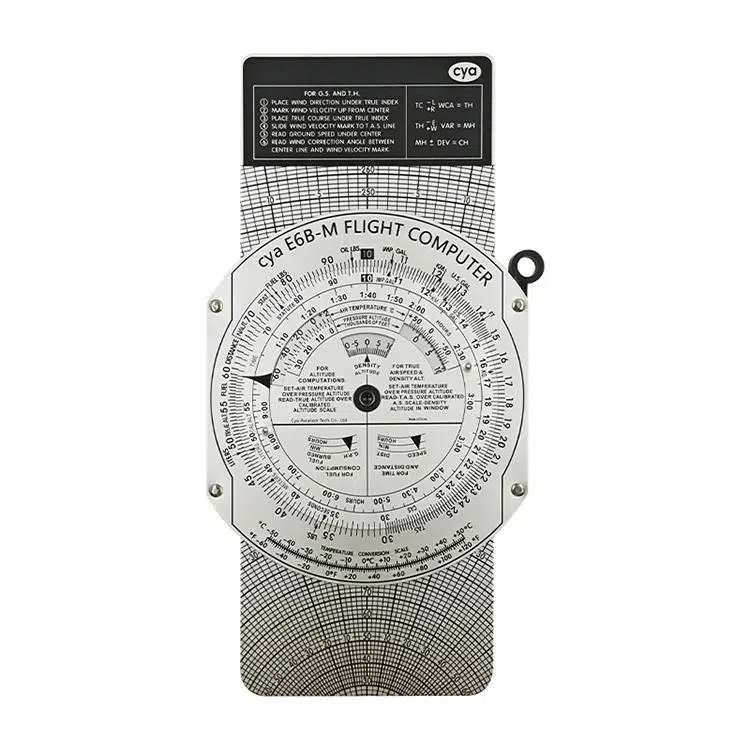 Metal Slide Graphic Computer Standard Flying Training Student E6B Flight Computer, a heavy duty slide graphic flight computer, following updated Air Force military quality standard. Solid metal construction with easy rotating parts, perfect for quick calculating time, speed, airspeed, altitude and distance problems.