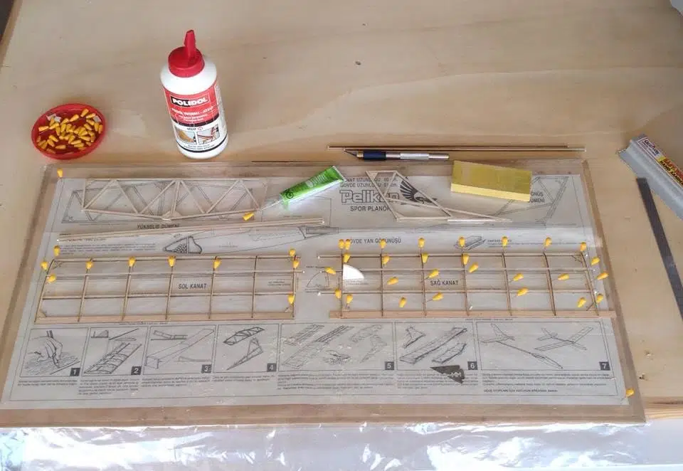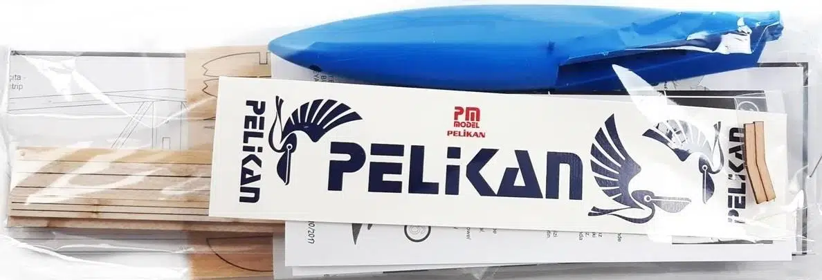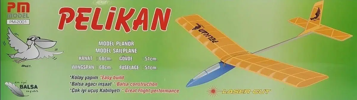Pelikan planörü plastik başlıklı, ana inşaatı balsa ağacından lazer kesim bir modeldir. Pelikan’ın gövde çıtası ayous ağacından olup dönüş ve yükseliş dümenleri bu çıta üzerine yapıştırılmaktadır.