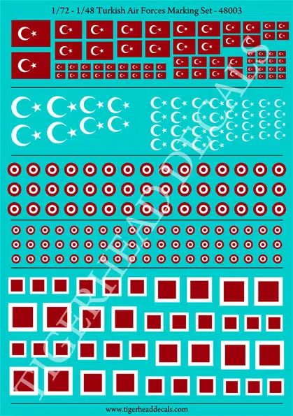 YERLİ ÜRETİM. Turkish Air Forces Marking and Numbers Set (48003&48004) TigerHead Decals is releasing a new Turkish Air Force marking set. This set that has been prepared for 1/48 and 1/72 scaled models.